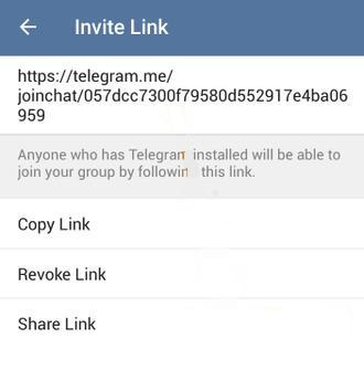 ۵- اکنون از طریق گزینه Copy Link یا Share Link می توانید لینک دعوت گروه خود را در سایر گروه ها به اشتراک بگذارید .
