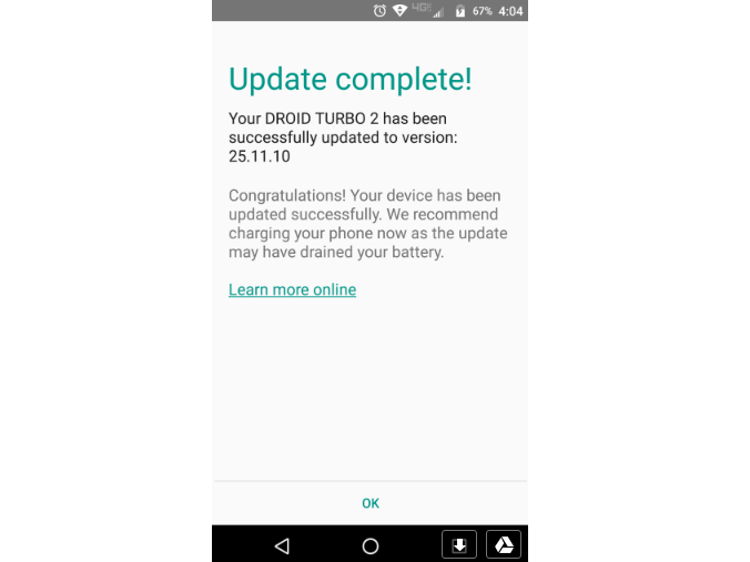 طبق گزارشهای منتشرشده، آپدیت اندروید 7.0 نوقا برای گوشی هوشمند موتورولا دروید توربو 2 عرضه شده است. این آپدیت از نسخه 25.11.10 بهره میبرد و هماکنون بهصورت OTA در دسترس کاربران قرار دارد.