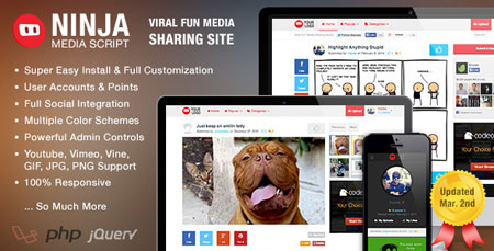 Ninja Media Script نام یک اسکریپت تجاری می باشد که با استفاده از آن قادر هستید یک سیستم اشتراک گذاری تصویر و ویدئو راه اندازی کنید. در این سیستم کاربران قادر هستند با عضویت در سایت اقدام به ارسال ویدئو و تصاویر خود کنند. از این اسکریپت عموما برای وب سایت های اشتراک گذاری تصاویر و ویدئو های جالب استفاده می شود. از قابلیت های این سیستم می توان به قابلیت عضویت و ورود کاربران (از طریق فیسبوک و گوگل) ، قابلیت افزودن مطالب دلخواه ، قابلیت دسته بندی تصاویر و ویدئو ها ، استفاده فراوان از ایجکس ، ارائه پروفایل کاربری ، قابلیت نظر دادن و پسندیدن در مطالب دیگران اشاره کرد. امکانات کلی را نام می بریم