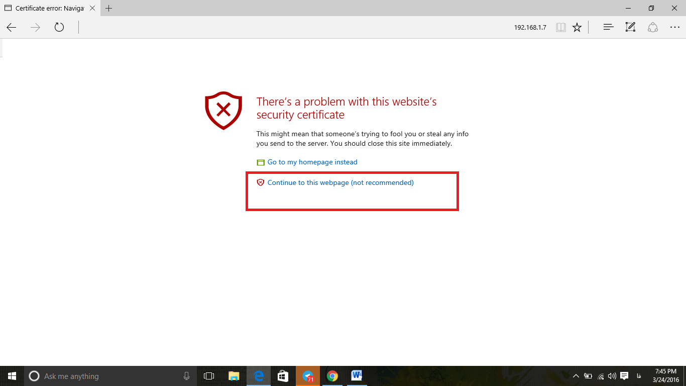 - در این قسمت مرورگر شما به آدرسی می رود که در پایین صفحه آن این گزینه را باید انتخاب کنید(continue this web page)