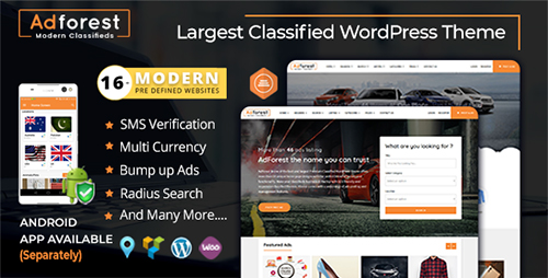 AdForest نام پوسته نیازمندیها و ثبت آگهی ووکامرس میباشد که توسط این پوسته ثبت آگهی میتوانید یک وبسایت نیازمندی ها ایجاد کرده و به کاربران خود این امکان بدهید تا بتوانند آگهی مورد نظر خود را ثبت کرده و یا جستجو کنند. این پوسته با دارا بودن امکانات بسیار زیاد و طراحی قدرتمند میتواند برای شما یک وبسایت نیازمندی ها حتی قدرتمندتر از نمونه های موجود ایجاد کند.
