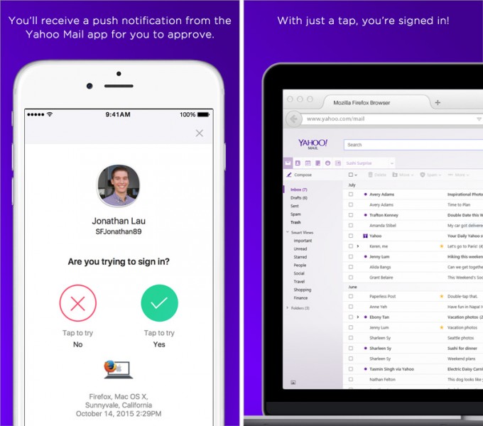 اوایل امسال، یاهو برای کاربرانش امکانی فراهم کرد تا بتوانند با استفاده از یک کد پیامکی به حساب کاربری خود وارد شوند. این اولین قدم یاهو در راستای حذف رمزهای عبور به حساب می آمد. کمپانی یادشده در قدم بعدی حالا به معرفی Yahoo Account Key پرداخته؛ قابلیتی که برای فراهم کردن دسترسی کاربر به حساب کاربری از اعلان های لحظه ای (Push Notifications) استفاده می کند.